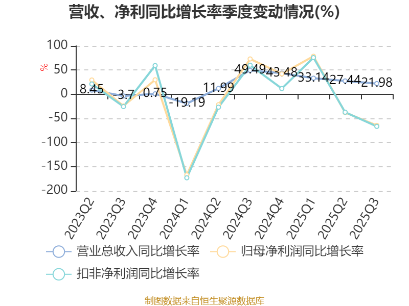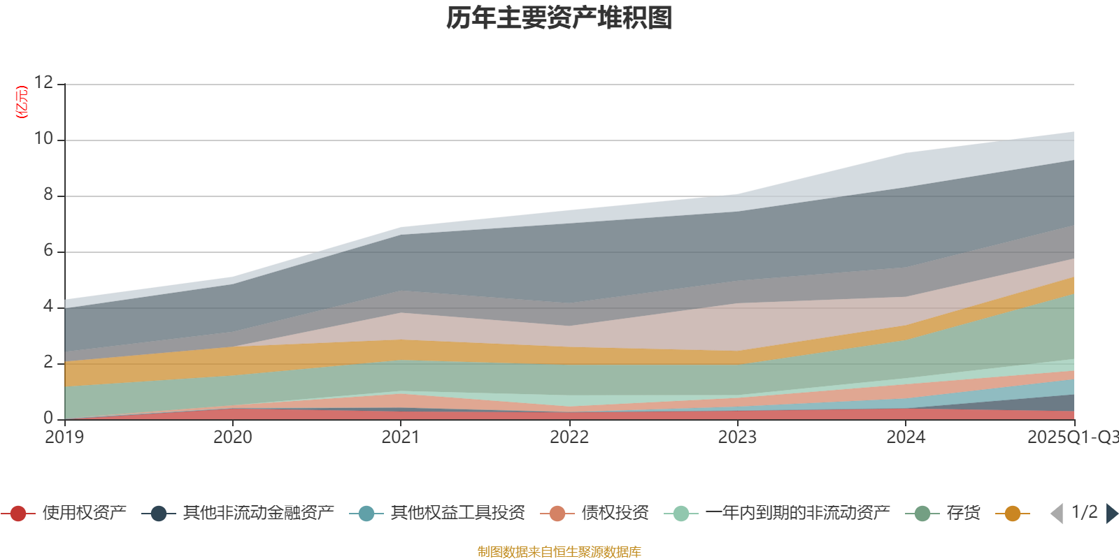资产重大变化方面,截至2025年三季度末,公司存货较上年末增加70.32%,占公司总资产比重上升8.29个百分点;货币资金较上年末减少18.62%,占公司总资产比重下降7.38个百分点;其他非流动金融资产较上年末增加9316.23%,占公司总资产比重上升5.75个百分点;交易性金融资产合计较上年末减少36.23%,占公司总资产比重下降4.39个百分点。