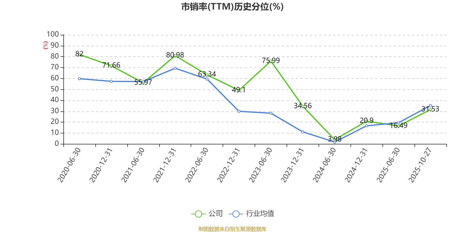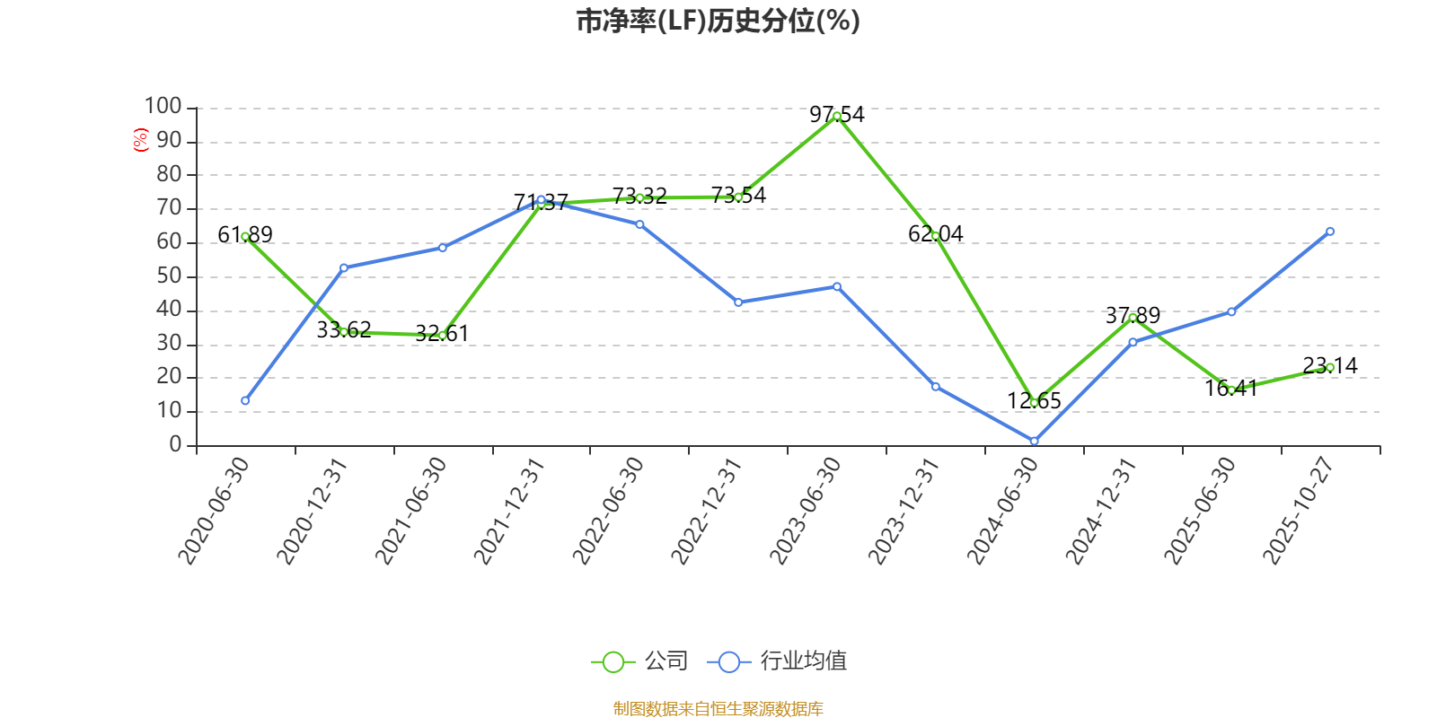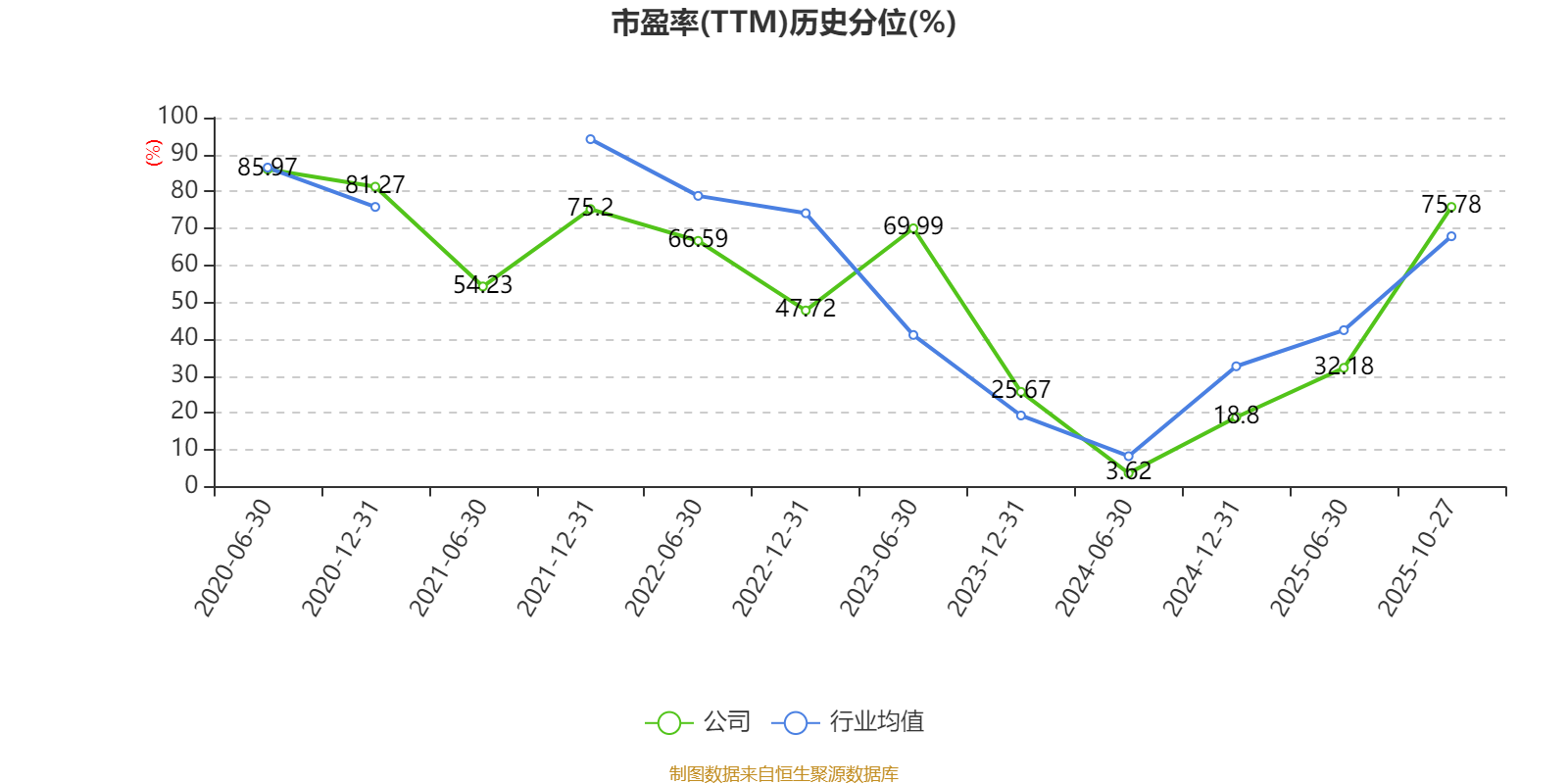 市盈率、市净率为负时,不显示当期分位数,会导致折线图中断。