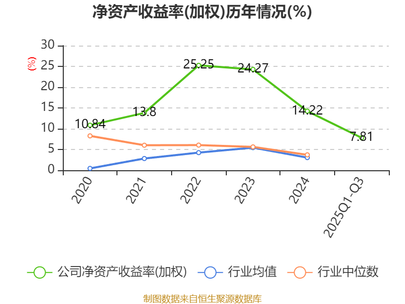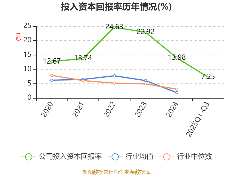 盈利能力方面, 2025年前三季度公司加权平均净资产收益率为7.81%,同比下降5.52个百分点。公司2025年前三季度投入资本回报率为7.25%,较上年同期下降6.18个百分点。