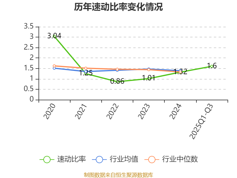 2025年前三季度,公司流动比率为2.61,速动比率为1.6。