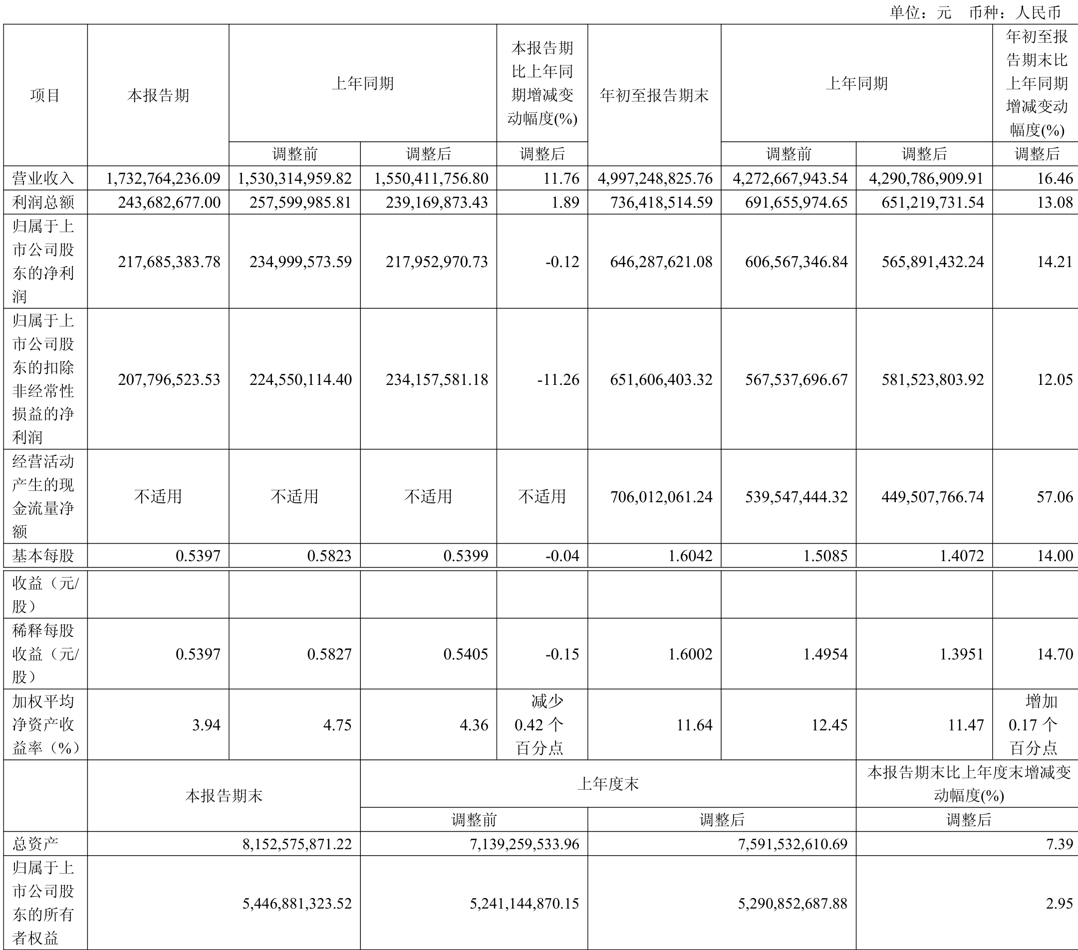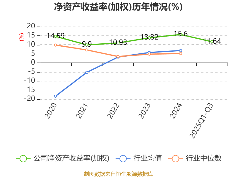盈利能力方面, 2025年前三季度公司加权平均净资产收益率为11.64%,同比下降0.81个百分点。公司2025年前三季度投入资本回报率为11.01%,较上年同期下降0.37个百分点。