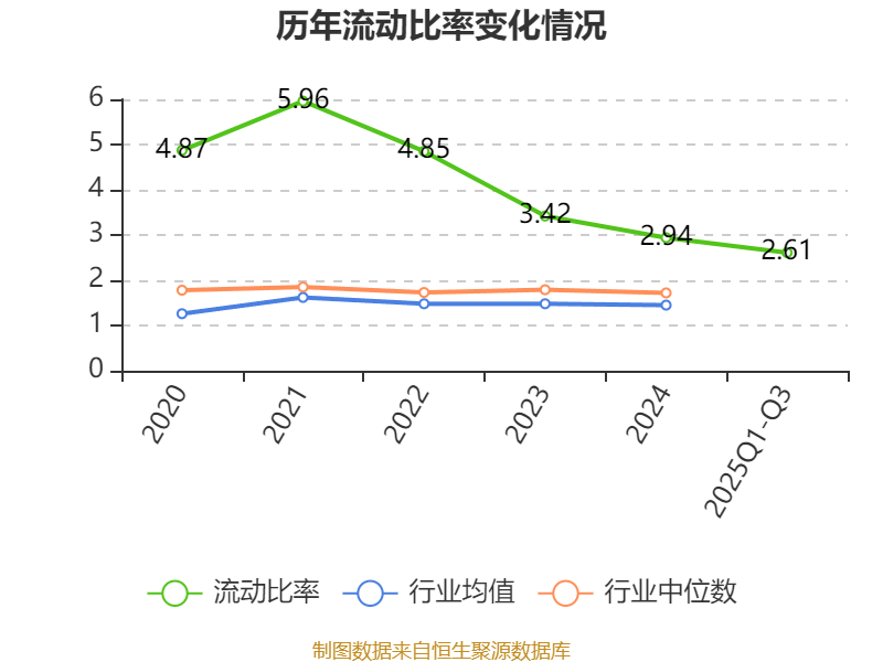 2025年前三季度,公司流动比率为2.61,速动比率为1.94。