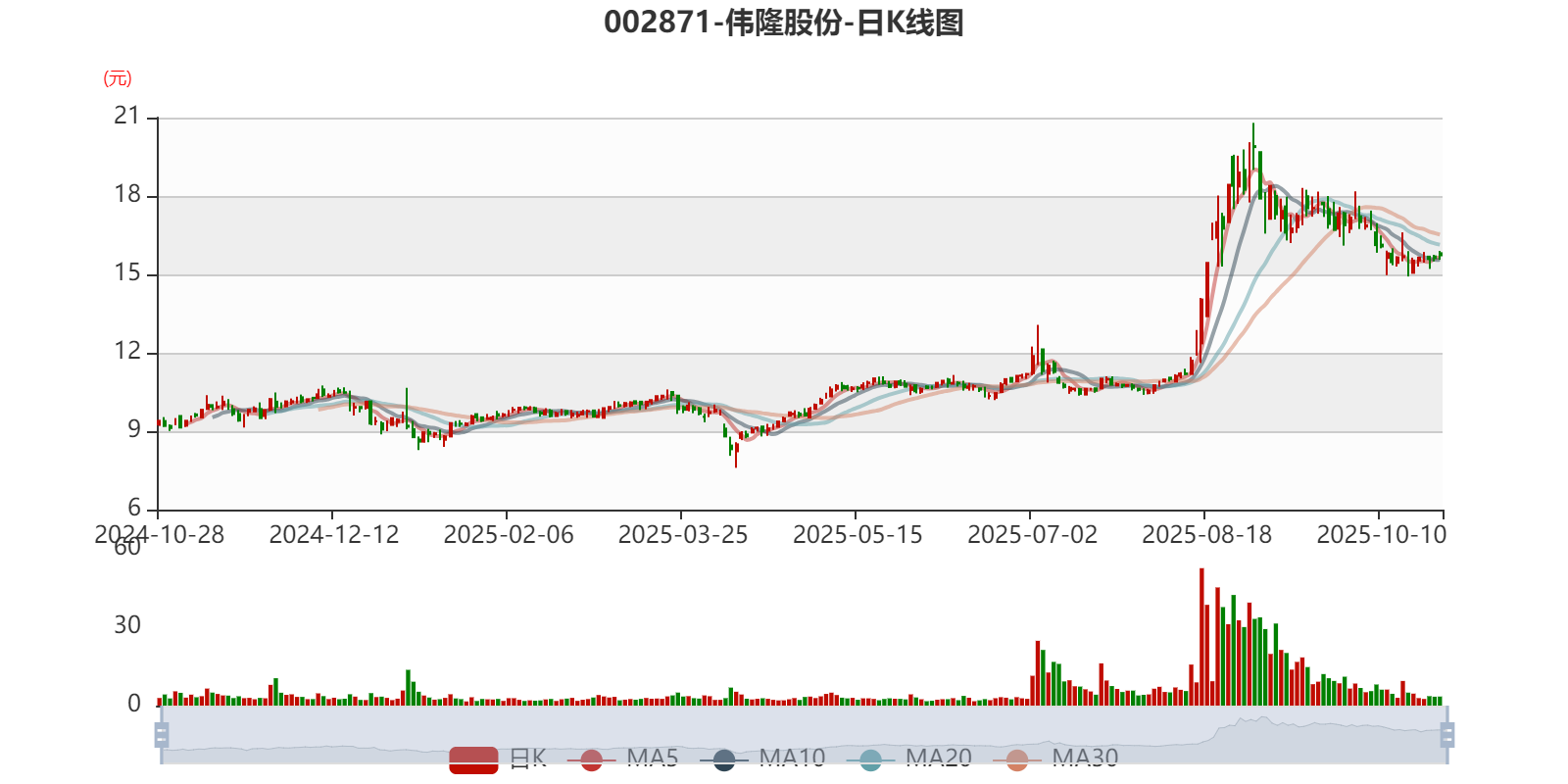 中证智能财讯伟隆股份(002871)10月28日披露2025年第三季度报告。前三季度公司实现营业总收入4.58亿元,同比增长16.90%;归母净利润1.03亿元,同比增长14.98%;扣非净利润9604.33万元,同比增长13.23%;经营活动产生的现金流量净额为8083.71万元,同比增长15.65%;报告期内,伟隆股份基本每股收益为0.46元,加权平均净资产收益率为10.59%。
