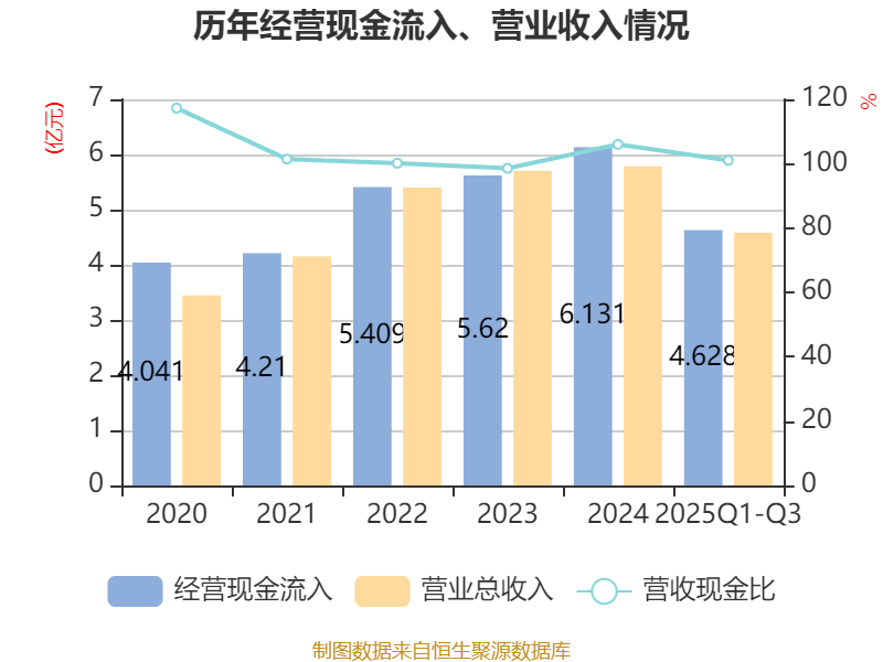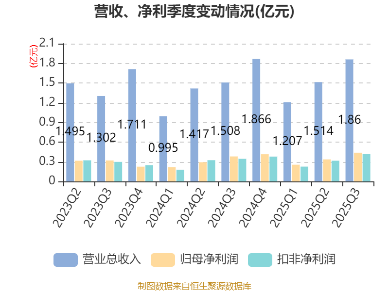 2025年前三季度,公司流动比率为3.33,速动比率为2.92。