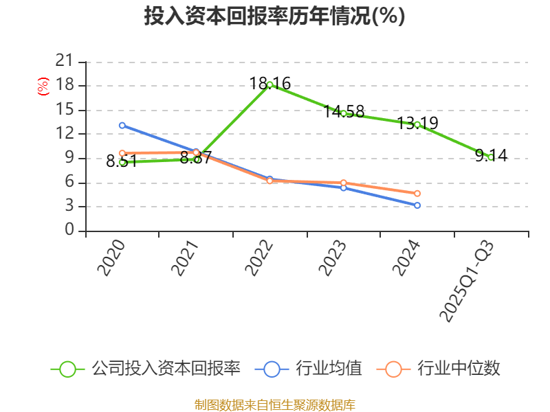 盈利能力方面, 2025年前三季度公司加权平均净资产收益率为10.59%,同比下降0.19个百分点。公司2025年前三季度投入资本回报率为9.14%,较上年同期上升0.12个百分点。