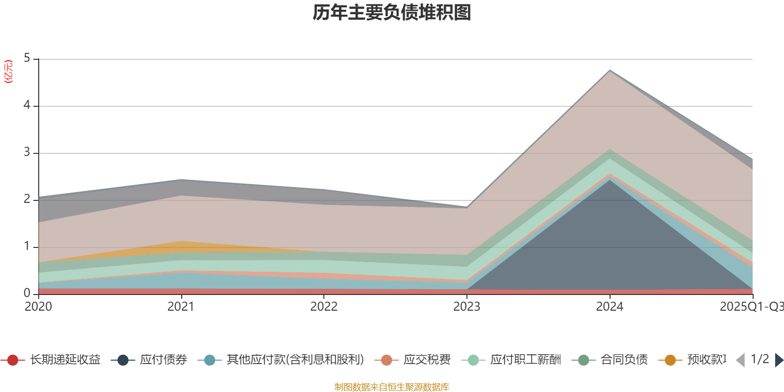 负债重大变化方面,截至2025年三季度末,公司应付债券较上年末减少100%,占公司总资产比重下降17.03个百分点;其他应付款(含利息和股利)较上年末增加513.04%,占公司总资产比重上升2.73个百分点;短期借款占公司总资产的1.36%,上年末为0;应付票据及应付账款较上年末减少8.83%,占公司总资产比重下降1.26个百分点。