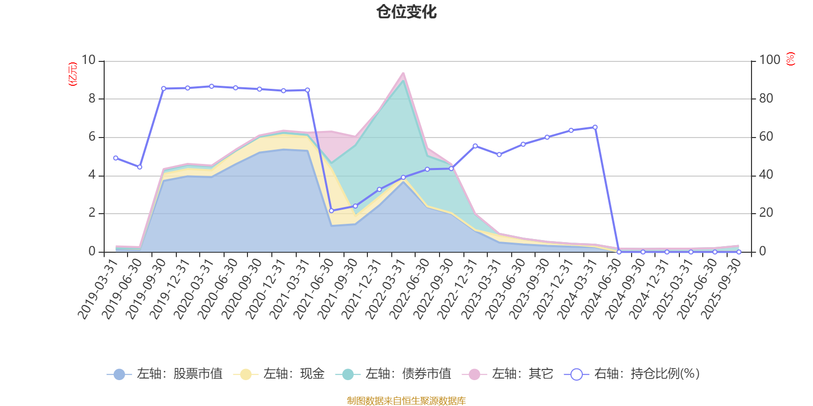 据定期报告数据统计,近三年平均股票仓位为29.32%,同类平均为80.73%。2020年一季度末基金达到86.72%的最高仓位,2021年上半年末最低,为21.59%。
