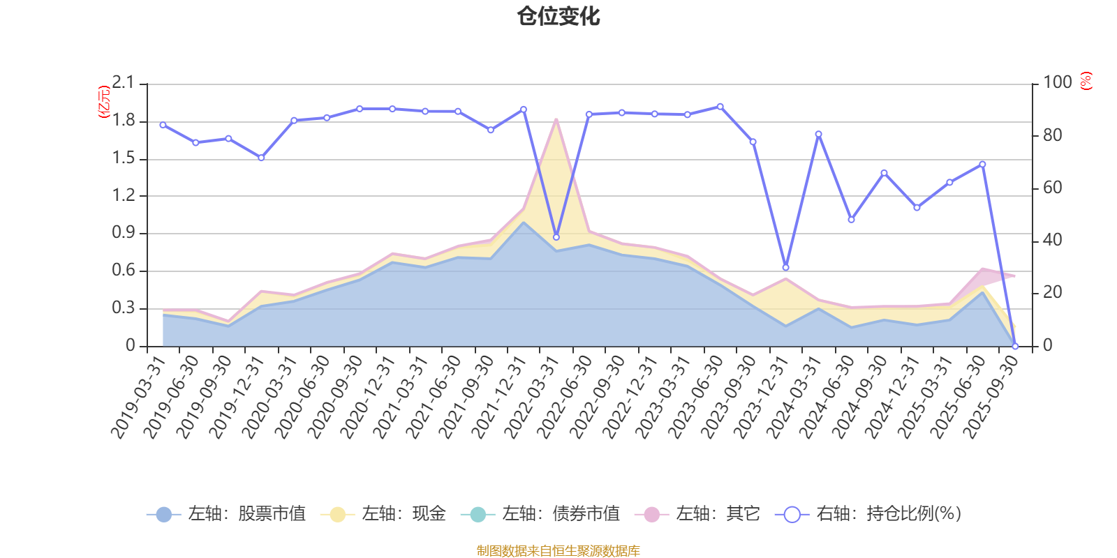 据定期报告数据统计,近三年平均股票仓位为62.97%,同类平均为72.16%。2023年上半年末基金达到91.29%的最高仓位,2023年末最低,为30.03%。