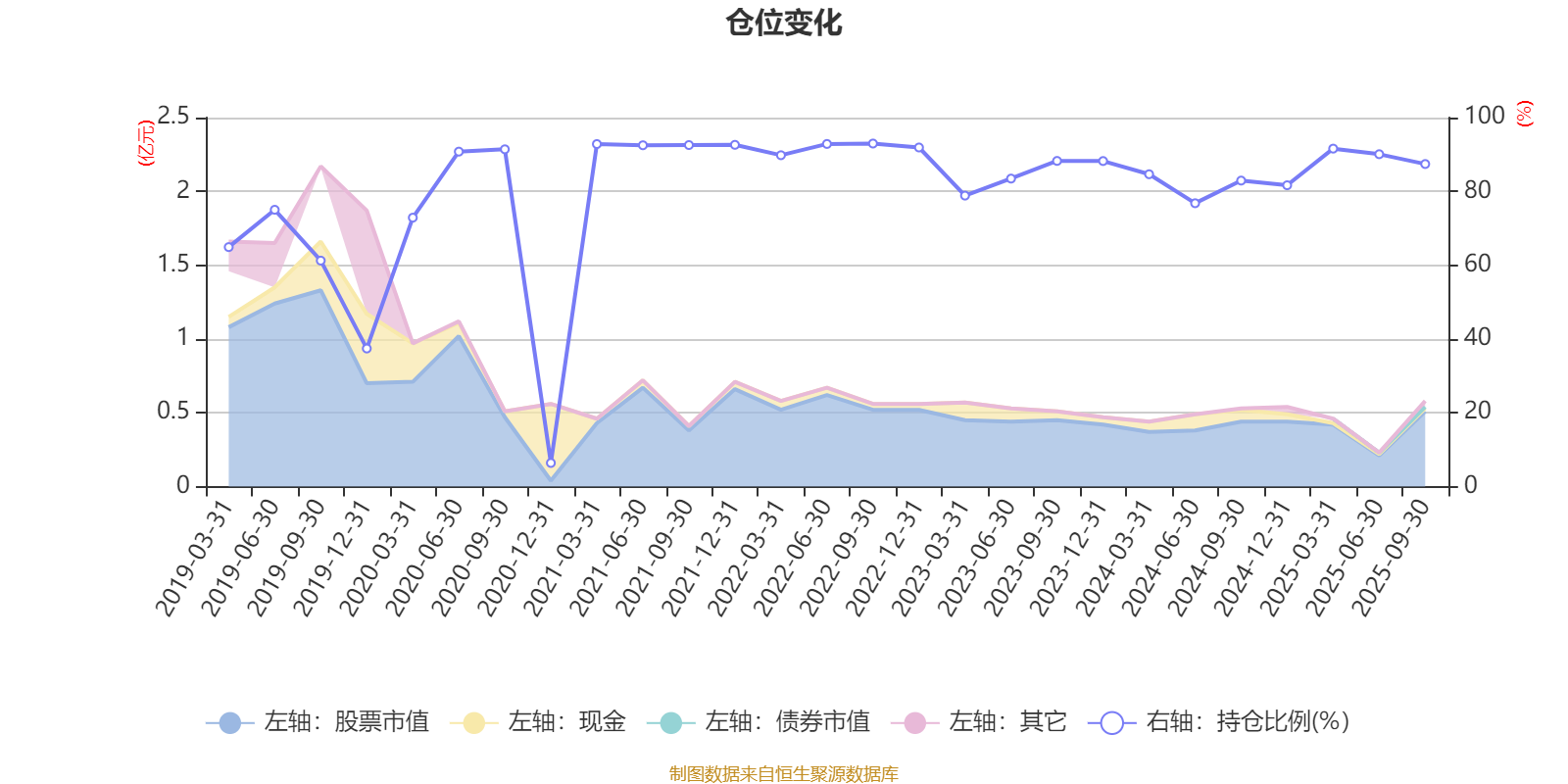 据定期报告数据统计,近三年平均股票仓位为85.49%,同类平均为72.16%。2022年三季度末基金达到92.97%的最高仓位,2020年末最低,为6.4%。