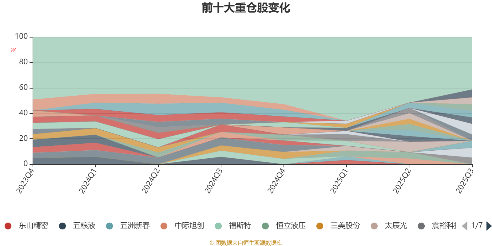 截至2025年三季度末,基金十大重仓股分别是浙江荣泰、唯科科技、汉威科技、鸣志电器、中坚科技、绿的谐波、震裕科技、新瀚新材、拓普集团、龙溪股份。