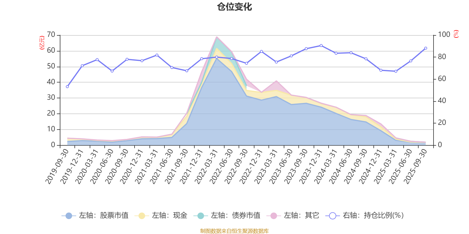 据定期报告数据统计,近三年平均股票仓位为80.5%,同类平均为72.16%。2023年末基金达到90.52%的最高仓位,2019年三季度末最低,为53.18%。