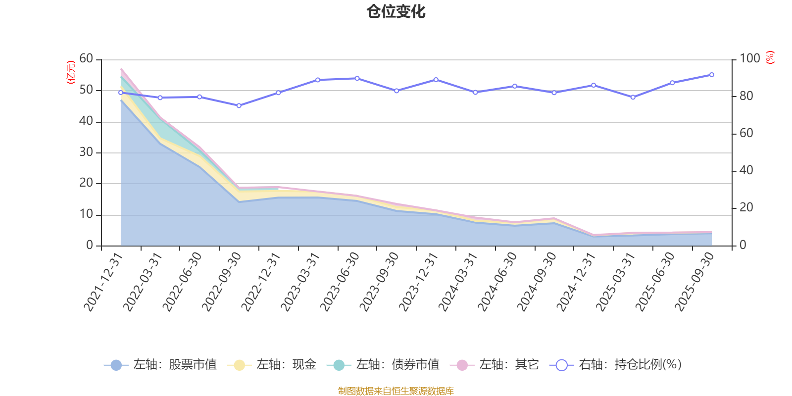 据定期报告数据统计,近三年平均股票仓位为85.71%,同类平均为85.51%。2025年三季度末基金达到91.78%的最高仓位,2022年三季度末最低,为75.19%。