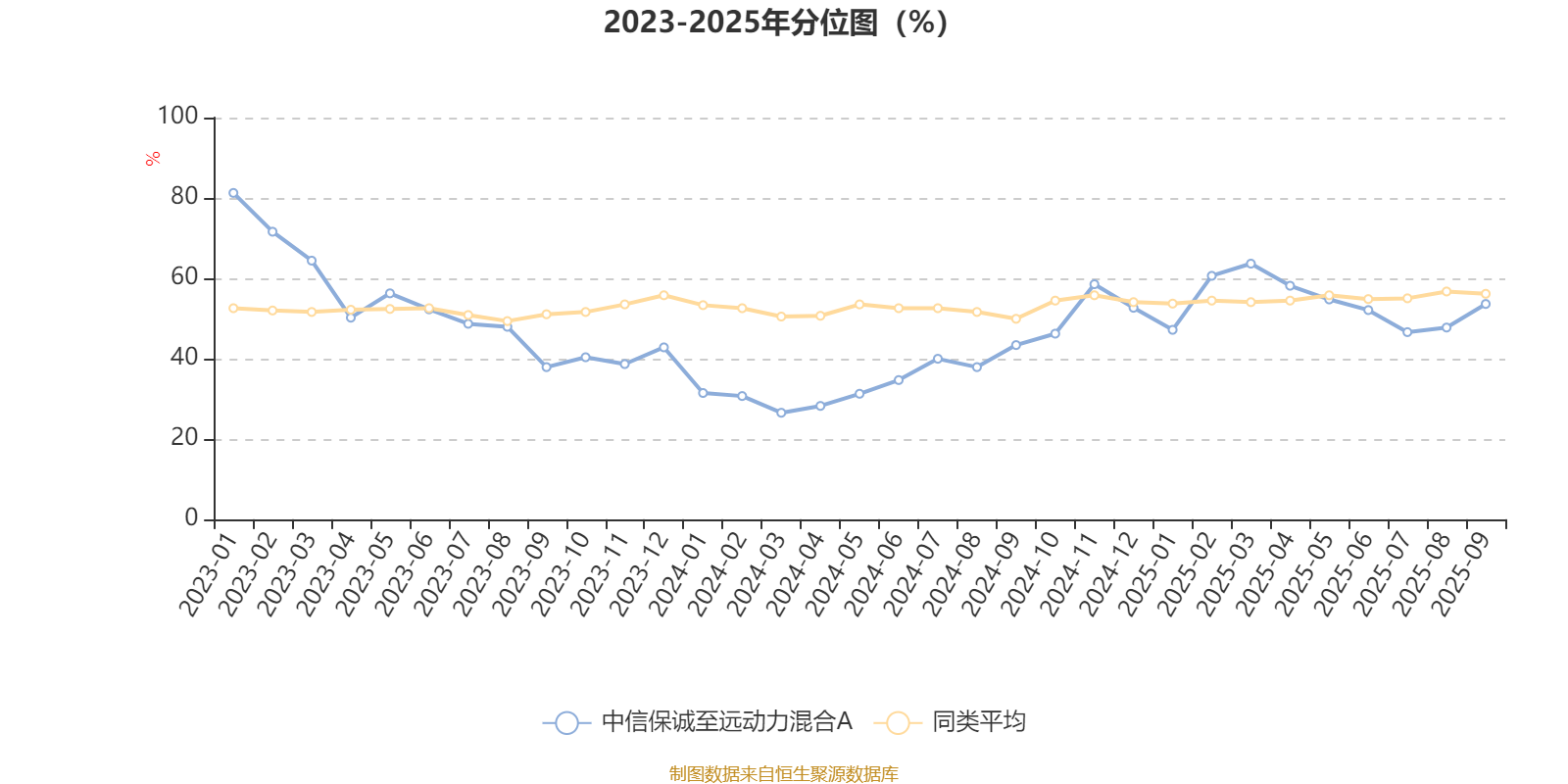 通过所选区间该基金净值增长率分位图,可以观察该基金与同类基金业绩比较情况。图为坐标原点到区间内某时点的净值增长率在同类基金中的分位数。