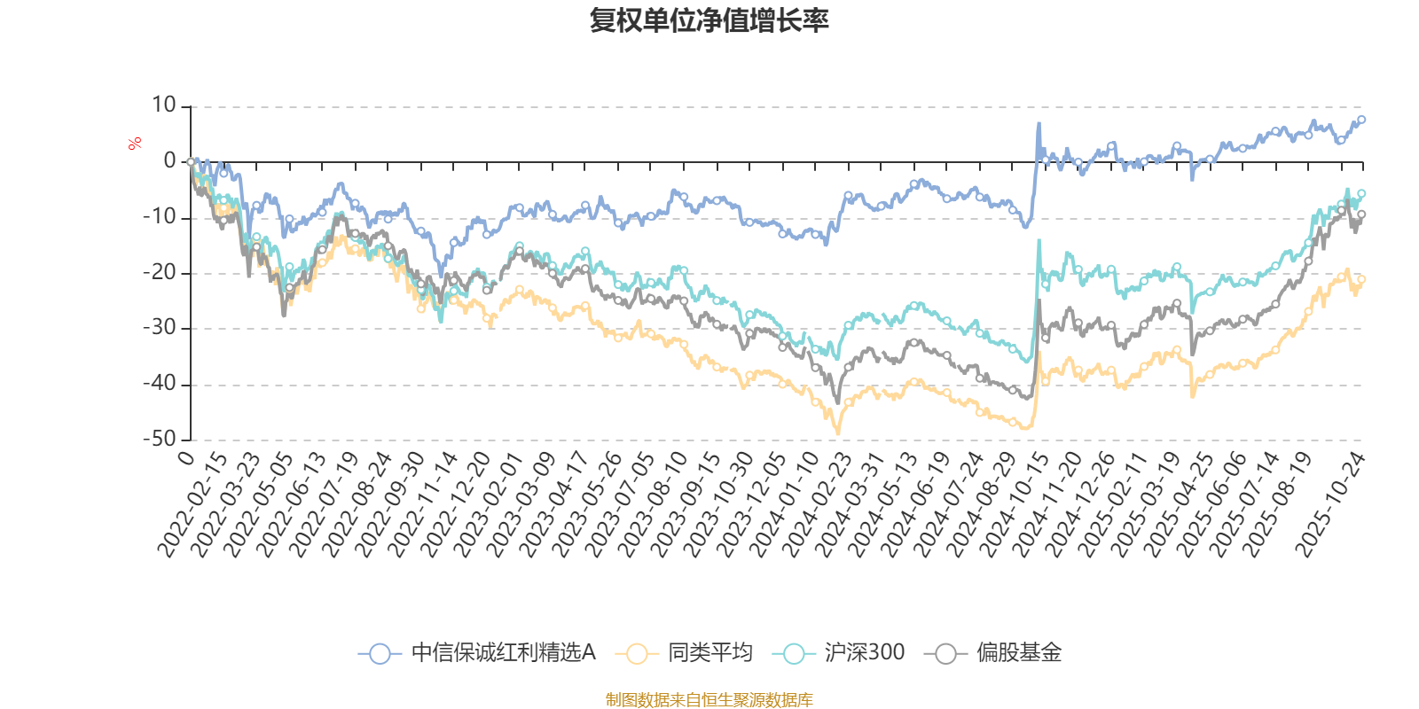 截至10月24日,中信保诚红利精选A近三个月复权单位净值增长率为1.54%,位于同类可比基金622/689;近半年复权单位净值增长率为6.91%,位于同类可比基金654/688;近一年复权单位净值增长率为6.85%,位于同类可比基金600/653;近三年复权单位净值增长率为30.19%,位于同类可比基金77/363。