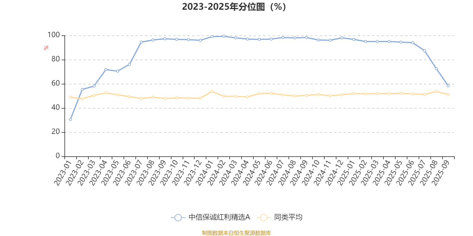 通过所选区间该基金净值增长率分位图,可以观察该基金与同类基金业绩比较情况。图为坐标原点到区间内某时点的净值增长率在同类基金中的分位数。