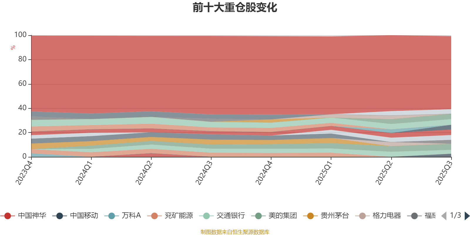 截至2025年三季度末,基金十大重仓股分别是美的集团、长江电力、工商银行、杭州银行、招商银行、农业银行、江苏银行、交通银行、福耀玻璃、中国移动。