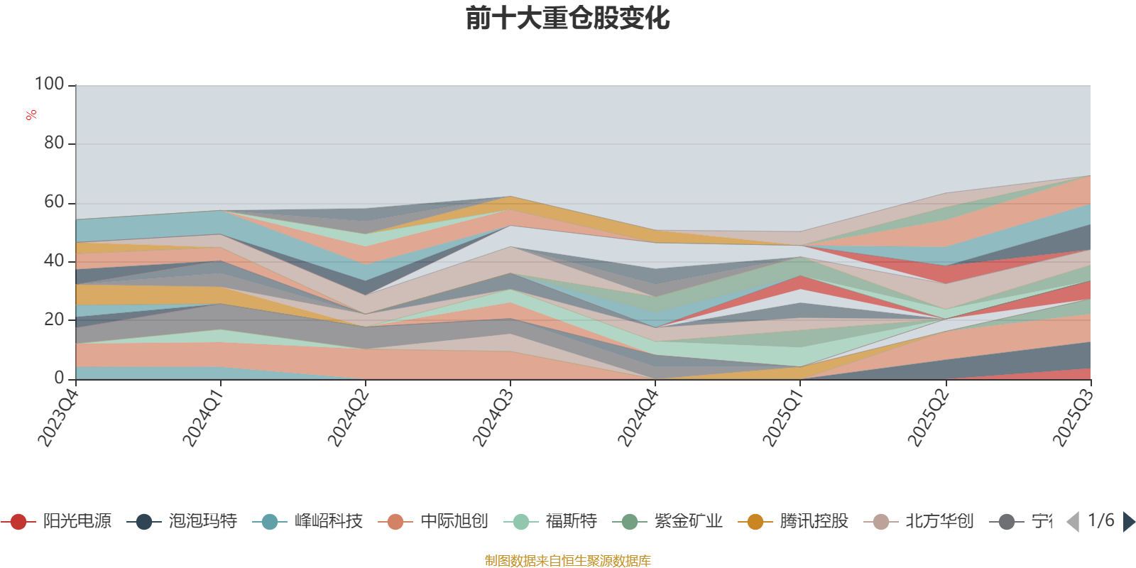 该基金持股集中度较高。截至2025年三季度末,基金十大重仓股分别是新易盛、中际旭创、泡泡玛特、工业富联、天孚通信、生益科技、中芯国际、沪电股份、紫金矿业、阳光电源。