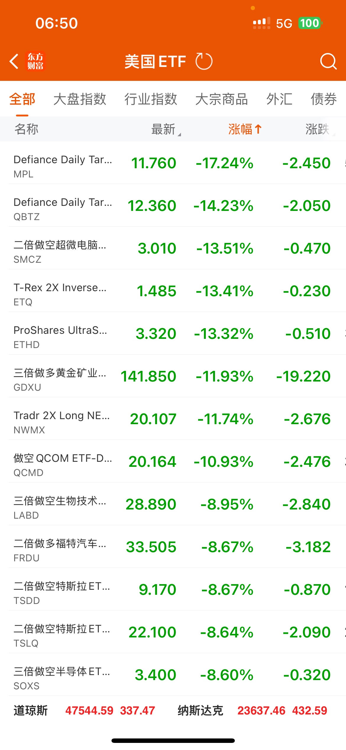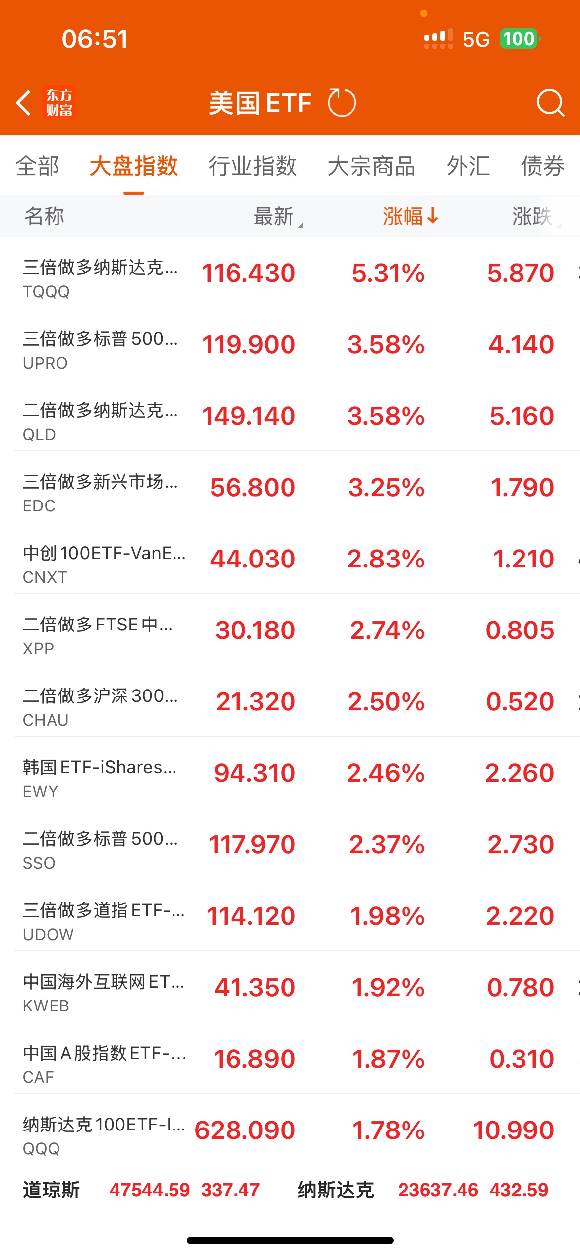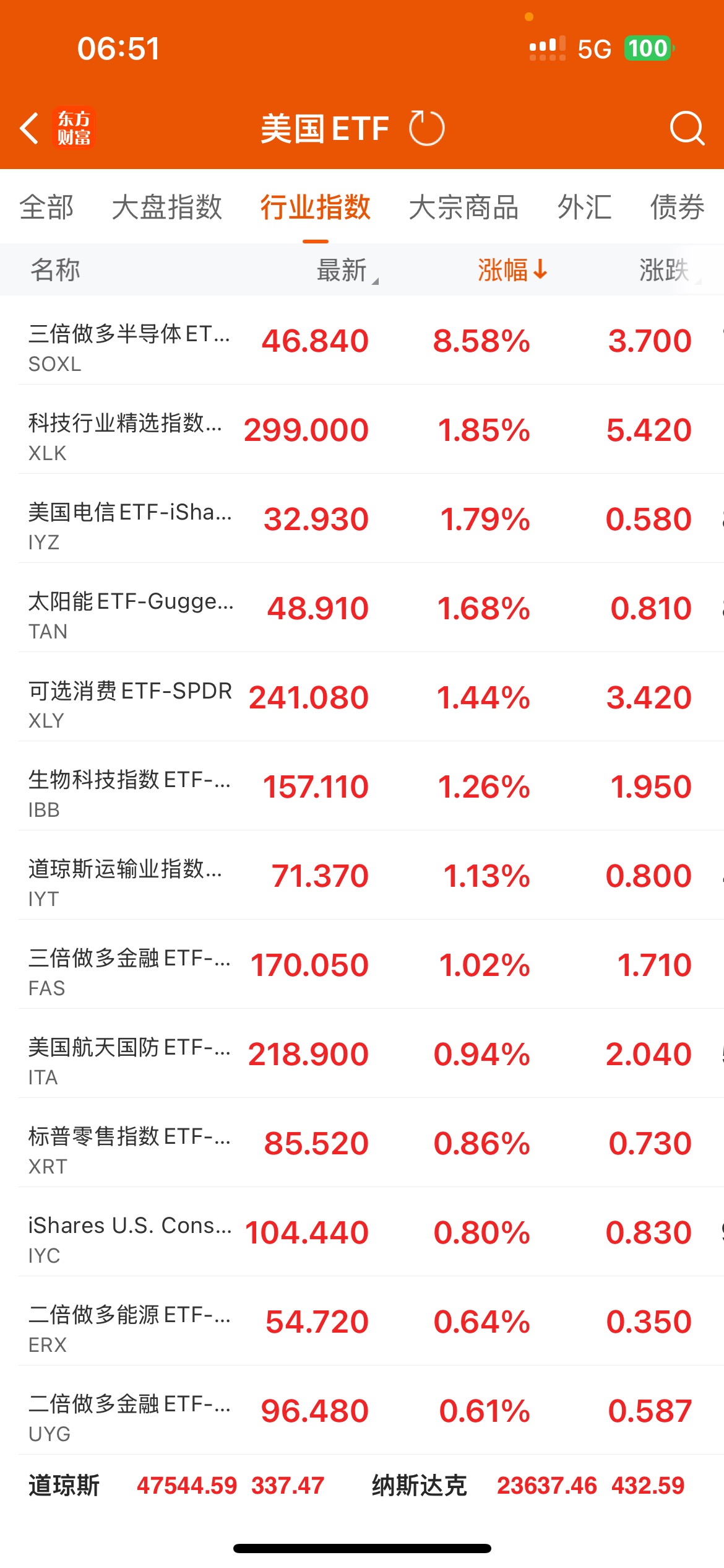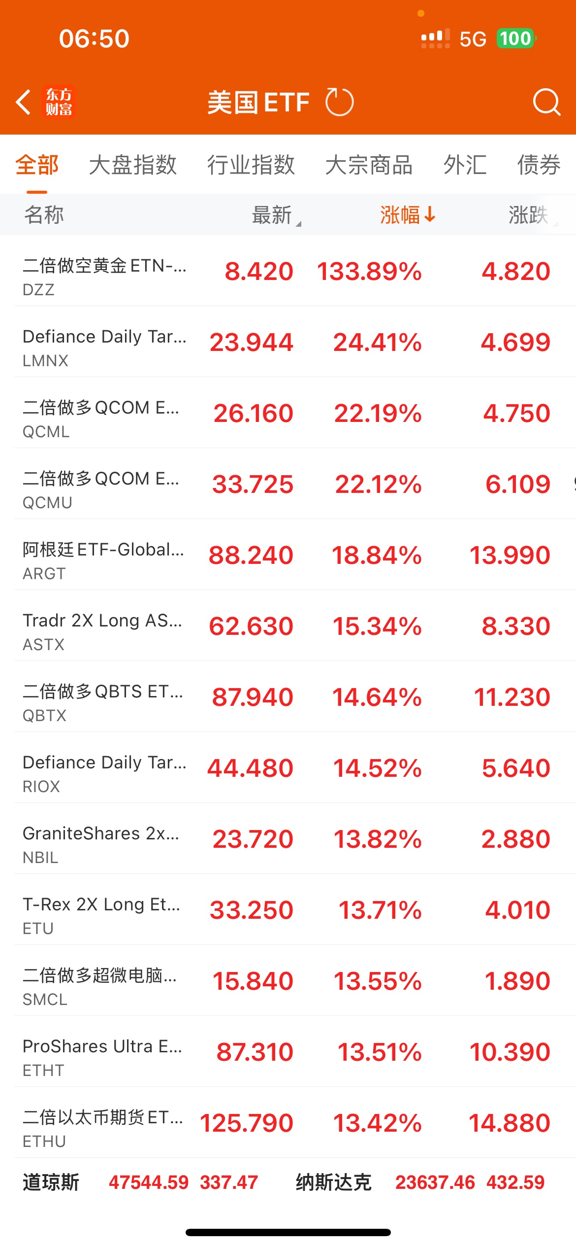 2倍做多纳斯达克100ETF-ProShares(QLD.US) 升3.58%,成交额3.65亿美元。
