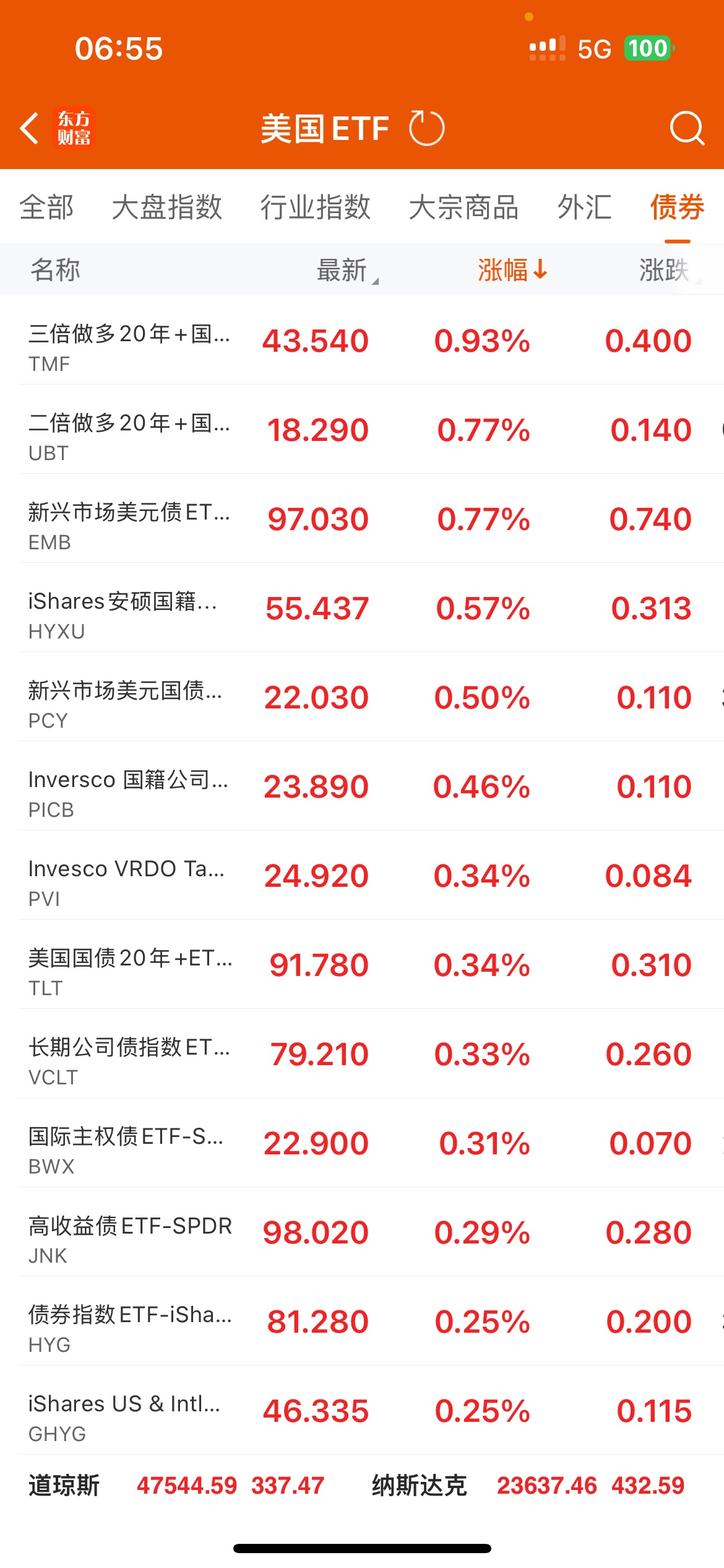 新兴市场美元债ETF-iShares(EMB.US) 升0.77%,成交额5.5亿美元。