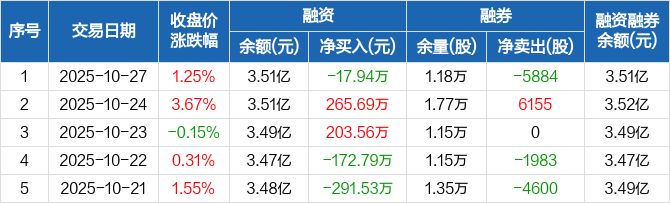 颀中科技:融资净偿还17.94万元,融资余额3.51亿元(10-27)