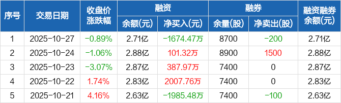 吉鑫科技:融资净偿还1674.47万元,融资余额2.71亿元(10-27)