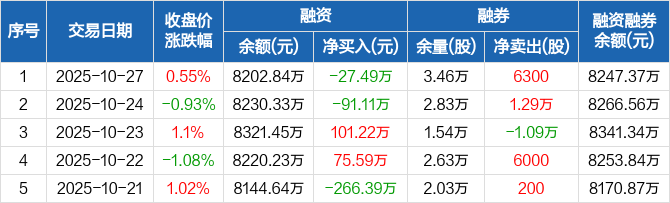 江苏新能:融资净偿还27.49万元,融资余额8202.84万元(10-27)
