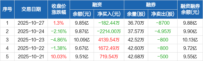 东湖高新:融资净偿还182.44万元,融资余额9.85亿元(10-27)