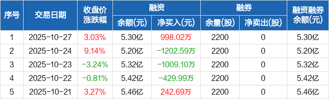 华海诚科:融资净买入998.02万元,融资余额5.3亿元(10-27)