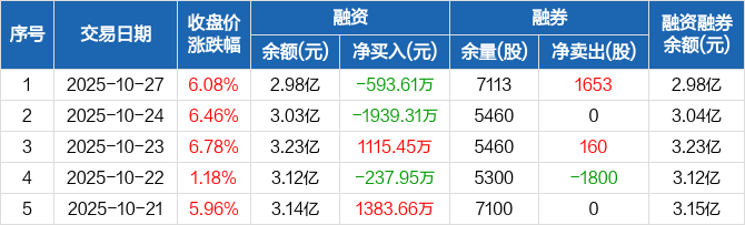 三孚新科:融资净偿还593.61万元,融资余额2.98亿元(10-27)