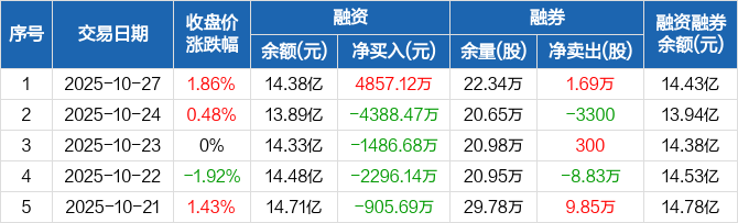 国电南瑞:融资净买入4857.12万元,融资余额14.38亿元(10-27)