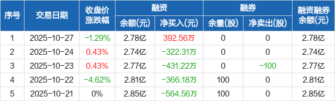 红星发展:融资净买入392.56万元,融资余额2.78亿元(10-27)