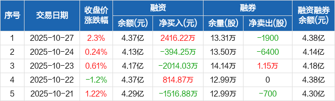 保变电气:融资净买入2416.22万元,融资余额4.37亿元(10-27)
