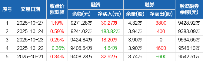 飞科电器:融资净买入30.27万元,融资余额9271.28万元(10-27)