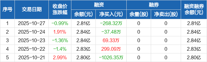瑞松科技:融资净偿还268.32万元,融资余额2.81亿元(10-27)