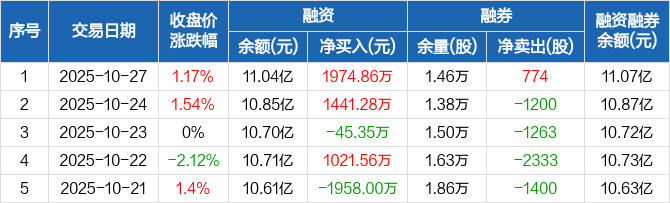 联影医疗:融资净买入1974.86万元,融资余额11.04亿元(10-27)