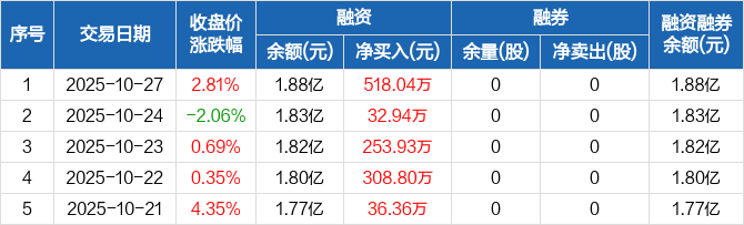 康欣新材:融资余额1.88亿元,创近一年新高(10-27)