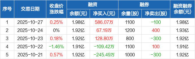 金辰股份:连续3日融资净买入累计782.06万元(10-27)