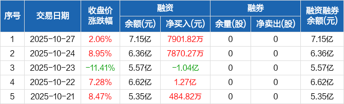 灿芯股份:融资净买入7901.82万元,融资余额7.15亿元(10-27)