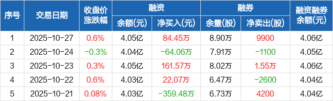 宁夏建材:融资净买入84.45万元,融资余额4.05亿元(10-27)