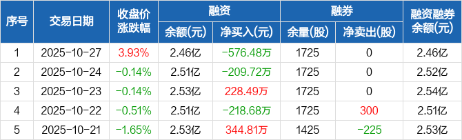 佰仁医疗:融资净偿还576.48万元,融资余额2.46亿元(10-27)