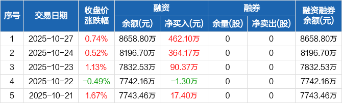 赛科希德:融资余额8658.8万元,创近一年新高(10-27)