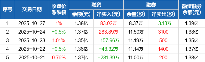 禾丰股份:融资净买入83.02万元,融资余额1.38亿元(10-27)