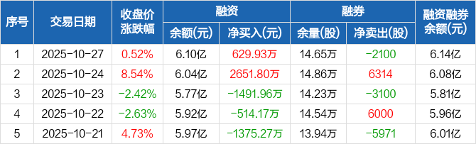 燕东微:融资净买入629.93万元,融资余额6.1亿元(10-27)