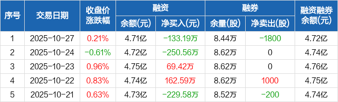 亚辉龙:融资净偿还133.19万元,融资余额4.71亿元(10-27)