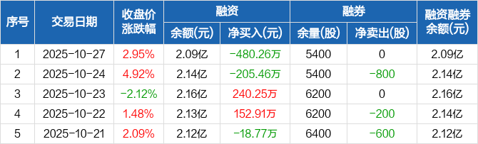 裕太微:融资净偿还480.26万元,融资余额2.09亿元(10-27)