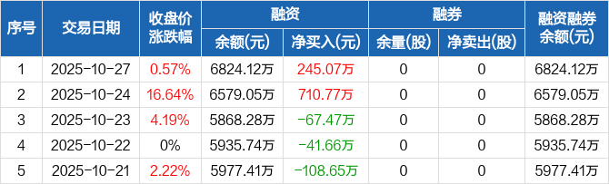 佳华科技:融资净买入245.07万元,融资余额6824.12万元(10-27)