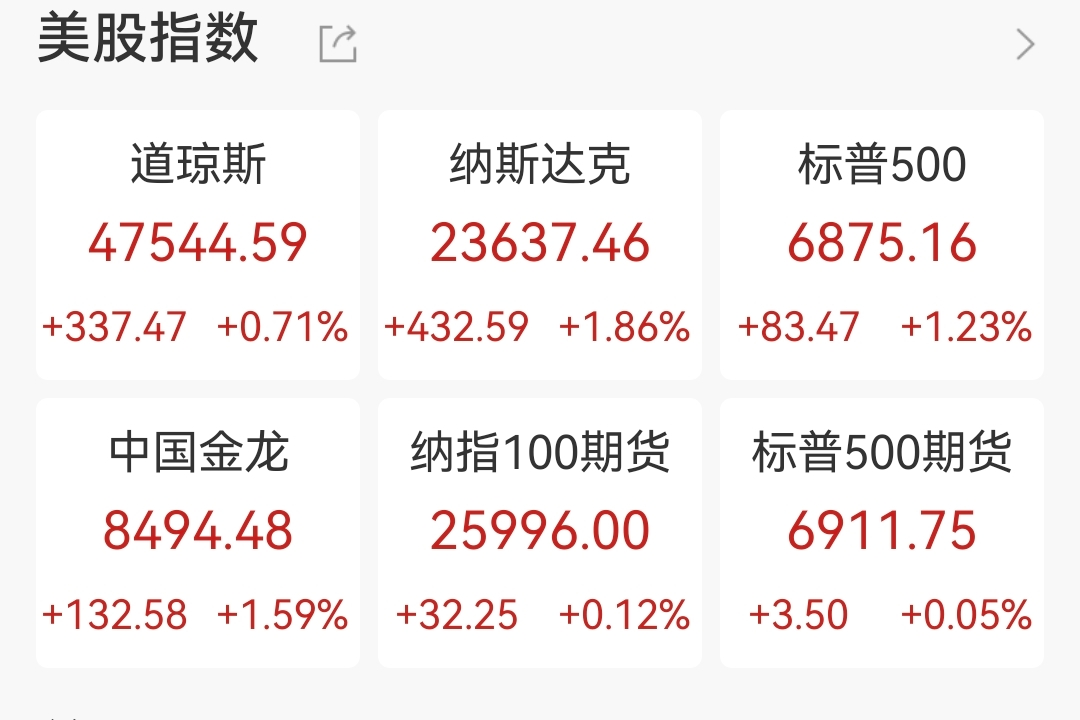 当地时间10月27日,美国三大股指全线收涨,道指涨0.71%,标普500指数涨1.23%,纳指涨1.86%,均再创历史新高。