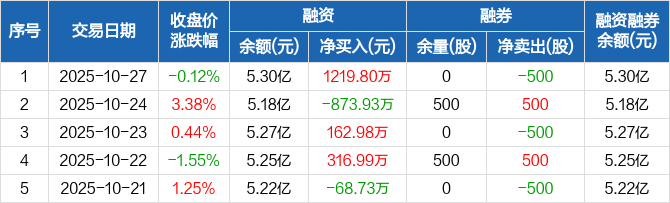 元力股份:融资净买入1219.8万元,融资余额5.3亿元(10-27)