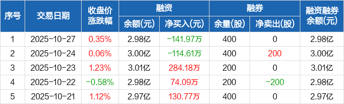 中远海科:融资净偿还141.97万元,融资余额2.98亿元(10-27)