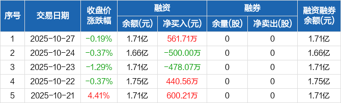 恒信东方:融资净买入561.71万元,融资余额1.71亿元(10-27)